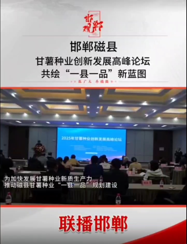 觀邯鄲視頻號發(fā)布《邯鄲磁縣:甘薯種業(yè)創(chuàng)新發(fā)展高峰論壇 共繪“一縣一品”新藍圖》視頻。深入闡釋了此次會議的核心目標,即助力磁縣甘薯種業(yè)實現(xiàn)“一縣一品”的產(chǎn)業(yè)化推進,推動甘薯種業(yè)高質(zhì)量發(fā)展。