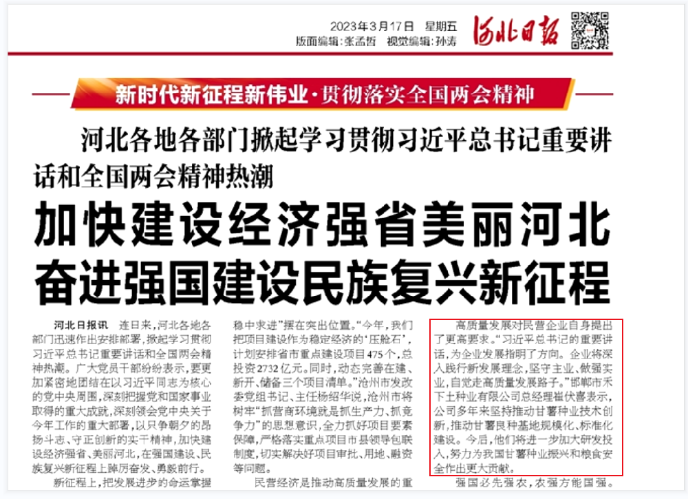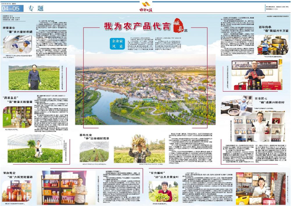2024年6月7日,邯鄲日報專題《我為農(nóng)產(chǎn)品代言 磁縣篇》刊登“甜蜜事業(yè),‘薯’育共富新希望”。邯鄲市禾下土種業(yè)有限公司總經(jīng)理崔伏喜扎根土地,創(chuàng)新進取、銳意開拓,以生物脫毒技術(shù)為依托,大力發(fā)展脫毒薯苗產(chǎn)業(yè),推進育種基地、組培基地、種薯基地、育苗基地“四位一體”規(guī)?;ㄔO(shè),建立起6個規(guī)模化甘薯良繁基地,年產(chǎn)種苗10余億株,年產(chǎn)值1.5億元,公司成功入選全國甘薯作物國家種業(yè)陣型企業(yè)。同時致力于培育地方特色農(nóng)業(yè)品牌,帶動群眾增收致富,推動鄉(xiāng)村經(jīng)濟振興,彰顯當代企業(yè)家精神風貌。