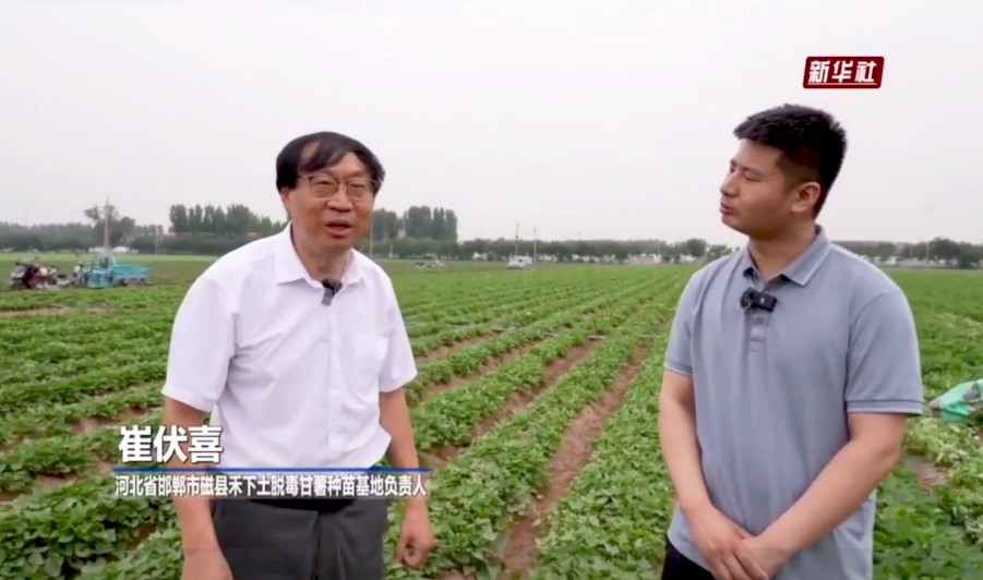 2024年6月5日,新華社直播節(jié)目《神州大地芒種忙》如期播出。節(jié)目中,邯鄲市禾下土種業(yè)有限公司總經(jīng)理崔伏喜陪同新華社河北分社記者張瑋華走進禾下土脫毒甘薯種苗基地、種薯基地、組培中心,察看組培苗移植擴繁、種苗剪收與栽種等一系列繁忙有序的作業(yè),并現(xiàn)場解讀甘薯脫毒組培關(guān)鍵環(huán)節(jié)、種苗采收流程、種苗栽種技巧,了解禾下土在組培擴繁苗創(chuàng)新、組培技術(shù)應(yīng)用、甘薯提質(zhì)增效等方面創(chuàng)新發(fā)展成果,展現(xiàn)了企業(yè)在實現(xiàn)農(nóng)業(yè)現(xiàn)代化、提升甘薯品質(zhì)方面的蓬勃發(fā)展。