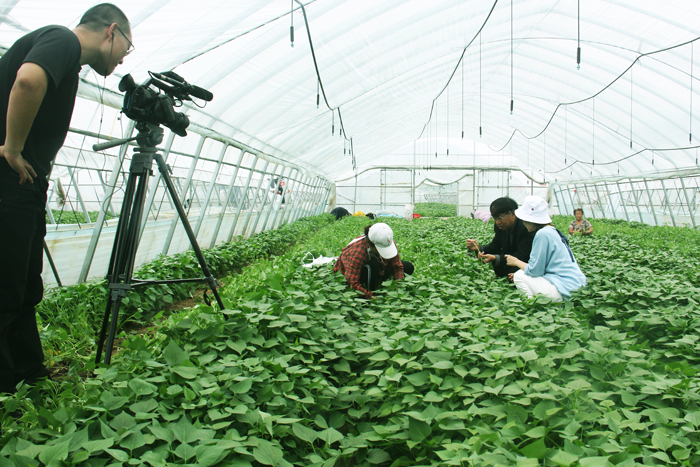 河北省農(nóng)業(yè)廳宣傳中心攝制組到禾下土脫毒甘薯種苗基地進行專題拍攝