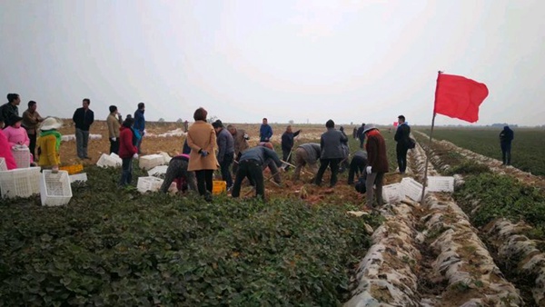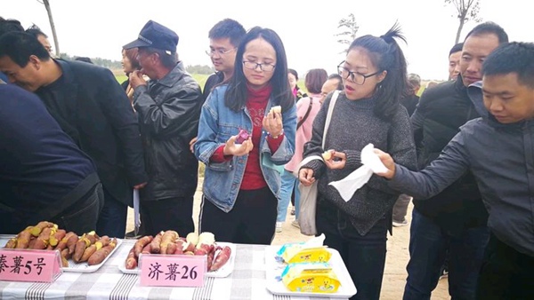 2018年10月18日,合陽縣農(nóng)業(yè)技術(shù)推廣中心組織農(nóng)業(yè)技術(shù)人員、紅薯種植農(nóng)戶、紅薯貯藏、銷售人員,參觀在當(dāng)?shù)胤N植禾下土脫毒紅薯苗濟(jì)薯26、秦薯5號(hào)、龍薯601、紫羅蘭收獲現(xiàn)場,經(jīng)國家甘薯體系安排的專家測定,秦薯5號(hào)畝產(chǎn)8374斤,濟(jì)薯26畝產(chǎn)10640斤,在紅薯生長期間遭遇嚴(yán)重干旱情況下,有這么高產(chǎn)量,商品率這么高,種植基地秦總非常滿意,對未來紅薯種植產(chǎn)業(yè)發(fā)展充滿信心。