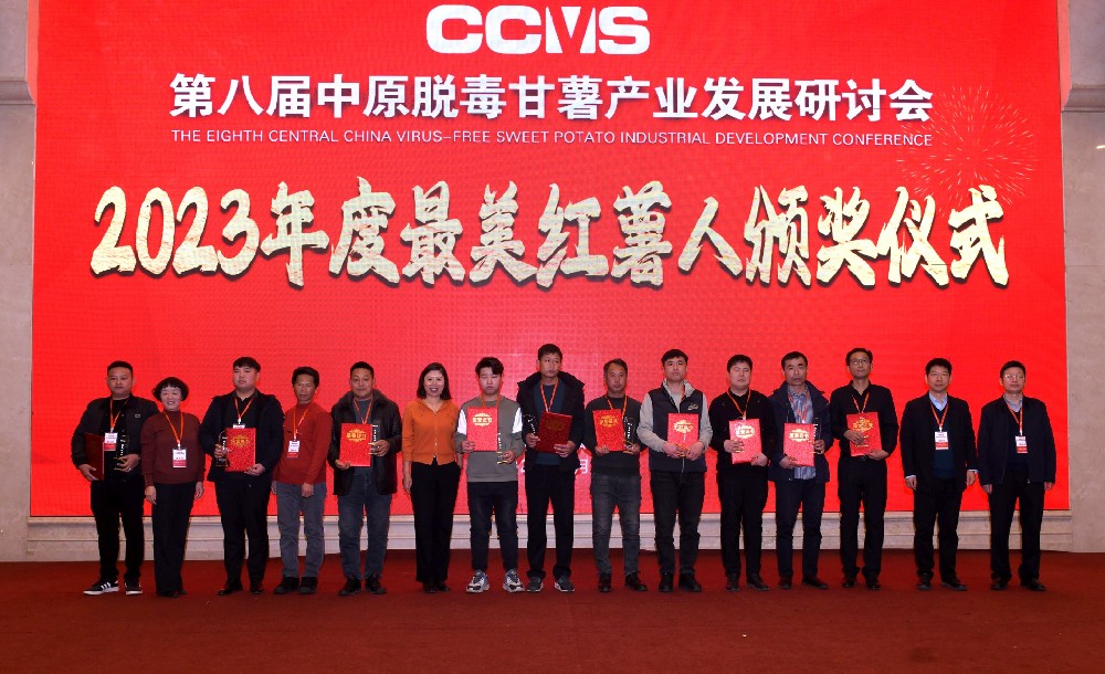 2024年1月7日,“2023年度最美紅薯人”正式揭曉。新疆烏蘇趙勝利、河南開(kāi)封朱云龍、廣東湛江駱建光、河北唐山王志剛、山東臨沂王朝良、天津?qū)幒有旌2?、遼寧綏中冀增武、河南新鄉(xiāng)袁增堯、河北廊坊常滿良、黑龍江省牡丹江任玉建榮獲“2023年度最美紅薯人”稱號(hào)。國(guó)家甘薯產(chǎn)業(yè)技術(shù)體系副首席科學(xué)家、徐州市農(nóng)業(yè)科學(xué)院副院長(zhǎng)曹清河、國(guó)家甘薯產(chǎn)業(yè)技術(shù)體系病蟲(chóng)害防控研究室主任、河南省農(nóng)業(yè)科學(xué)院植物保護(hù)研究所副所長(zhǎng)張振臣、廣東省普寧市農(nóng)業(yè)科學(xué)研究所副所長(zhǎng)馮順紅、國(guó)家甘薯產(chǎn)業(yè)技術(shù)體系崗位專家、山東省農(nóng)科院作物研究所甘薯研究室主任王慶美、邯鄲市禾下土種業(yè)有限公司董事長(zhǎng)王玉文為“2023年度最美紅薯人”進(jìn)行了現(xiàn)場(chǎng)頒獎(jiǎng)。