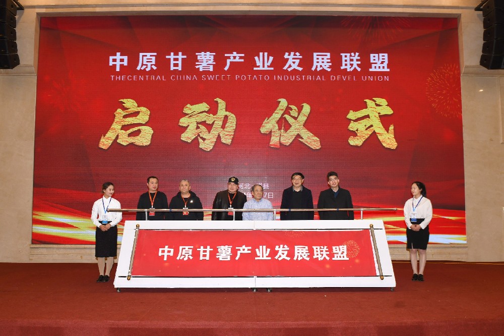 為讓甘薯上下游產(chǎn)業(yè)鏈深度融合,讓甘薯前后端供應(yīng)鏈緊密銜接。加強(qiáng)育種專家、種業(yè)企業(yè)、農(nóng)資服務(wù)商、甘薯種植者、鮮薯銷售企業(yè)、甘薯加工企業(yè)開(kāi)展全產(chǎn)業(yè)鏈合作,適應(yīng)“鏈鏈融合、和合發(fā)展”的新趨勢(shì),搭建交流學(xué)習(xí)平臺(tái),建立更緊密的關(guān)系,助力企業(yè)發(fā)展,壯大甘薯產(chǎn)業(yè)?!爸性适懋a(chǎn)業(yè)發(fā)展聯(lián)盟”啟動(dòng)儀式在“第八屆中原脫毒甘薯產(chǎn)業(yè)發(fā)展研討會(huì)”上隆重舉行。專家代表馬代夫會(huì)長(zhǎng)、種業(yè)企業(yè)代表崔伏喜總經(jīng)理、農(nóng)資企業(yè)代表婁俊嶺部長(zhǎng)、種植企業(yè)代表畢成龍總經(jīng)理、鮮薯銷售企業(yè)代表盛小祿董事長(zhǎng)、加工企業(yè)代表李廣強(qiáng)分別代表所在領(lǐng)域,共同上臺(tái)為“中原甘薯產(chǎn)業(yè)發(fā)展聯(lián)盟”啟幕。“中原甘薯產(chǎn)業(yè)發(fā)展聯(lián)盟”的啟動(dòng),將加快促進(jìn)“甘薯產(chǎn)業(yè)鏈的融合和供應(yīng)鏈的銜接”,合力推動(dòng)甘薯產(chǎn)業(yè)的健康發(fā)展。