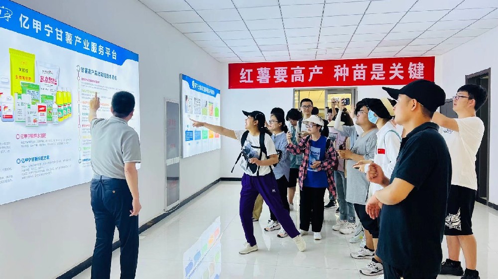 2023年6月8日,河北工程大學(xué)園林與生態(tài)工程學(xué)院組織20余名優(yōu)秀學(xué)生代表到邯鄲市禾下土種業(yè)有限公司開展“大學(xué)生教學(xué)實(shí)踐”活動(dòng)。副總經(jīng)理鄒義杰帶領(lǐng)同學(xué)們先后參觀甘薯綜合展廳、組培中心、組培苗擴(kuò)繁基地、種苗繁育基地等,深入學(xué)習(xí)了解甘薯產(chǎn)業(yè)新技術(shù)、新成果和發(fā)展新趨勢(shì)。鼓勵(lì)同學(xué)們發(fā)揮年輕的朝氣、專業(yè)的優(yōu)勢(shì),積極投身農(nóng)業(yè)領(lǐng)域,為國(guó)家種業(yè)振興、糧食安全、鄉(xiāng)村振興作出一份貢獻(xiàn)。禾下土作為河北工程大學(xué)較早建立的“大學(xué)生教學(xué)科研實(shí)習(xí)基地”,在甘薯科技研發(fā)、課題聯(lián)合攻關(guān)、人才交流、大學(xué)實(shí)習(xí)就業(yè)等方面保持長(zhǎng)期緊密協(xié)作,共同構(gòu)建“校企合作”新模式,推動(dòng)“產(chǎn)學(xué)研用”協(xié)同發(fā)展。