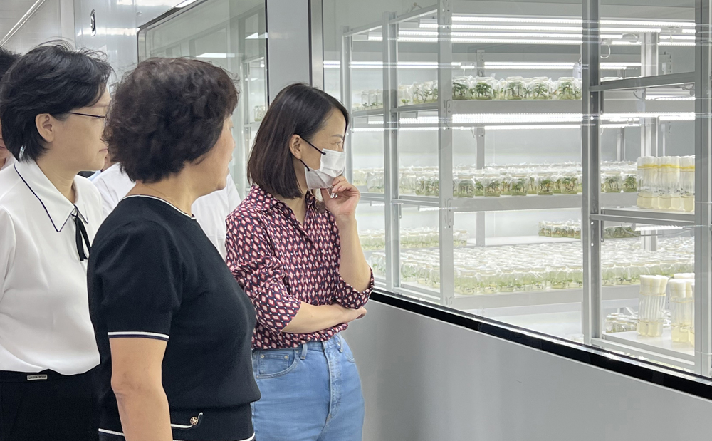 2022年9月14日,全國工商聯(lián)辦公廳財務(wù)處處長王蔓莎率領(lǐng)全國工商聯(lián)第八聯(lián)系調(diào)研組蒞臨禾下土公司進(jìn)行調(diào)研指導(dǎo)。邯鄲市委統(tǒng)戰(zhàn)部副部長、市工商聯(lián)黨組書記張麗英,市工商聯(lián)黨組成員、副主席程曉紅,磁縣縣委常委、統(tǒng)戰(zhàn)部部長趙菊梅陪同調(diào)研。調(diào)研組一行在董事長王玉文的陪同下,先后參觀禾下土企業(yè)展廳、脫毒組培中心,詳細(xì)了解禾下土在甘薯科研育種、技術(shù)創(chuàng)新、平臺建設(shè)、基地布局、產(chǎn)業(yè)帶動等方面的經(jīng)營發(fā)展情況。調(diào)研組對禾下土在甘薯產(chǎn)業(yè)領(lǐng)域所取得的成績給予充分肯定,鼓勵認(rèn)真把握宏觀形勢,堅定發(fā)展信心,抓住政策機遇,把企業(yè)做大做強。