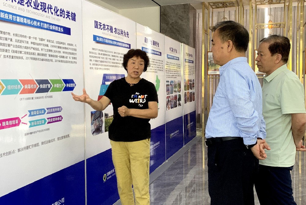 2022年7月20日,磁縣政協(xié)主席藺寶斌、副縣長李曉亮、政協(xié)副主席申建友一行到禾下土甘薯研發(fā)中心視察。邯鄲市禾下土種業(yè)有限公司董事長王玉文詳細(xì)匯報(bào)了禾下土在甘薯研發(fā)中心建設(shè)、重點(diǎn)科研平臺(tái)創(chuàng)建、甘薯生物脫毒技術(shù)研究及全國產(chǎn)業(yè)布局發(fā)展情況。