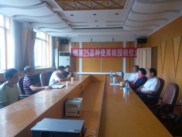 2017年9月11日,邯鄲市禾下土種業(yè)有限公司與煙臺(tái)市農(nóng)業(yè)科學(xué)院在山東煙臺(tái)簽定"煙薯25"甘薯品種使用權(quán)許可合同,有效日期15年。煙臺(tái)市農(nóng)業(yè)科學(xué)院授權(quán)邯鄲市禾下土種業(yè)有限公司"煙薯25"甘薯品種權(quán)在審定區(qū)域內(nèi)的使用權(quán),包括生產(chǎn)權(quán)、包裝權(quán)、經(jīng)營(yíng)權(quán)和維權(quán)。雙方共同對(duì)審定區(qū)域內(nèi)生產(chǎn)、銷(xiāo)售煙薯25品種進(jìn)行宣傳和規(guī)范。邯鄲市禾下土種業(yè)有限公司在河北省范圍內(nèi)可以確定營(yíng)銷(xiāo)、生產(chǎn)合作單位。煙薯25品種使用權(quán)合作洽談?dòng)N人辛國(guó)勝與禾下土公司崔伏喜經(jīng)理合影留念煙薯25品種使用權(quán)授權(quán)證書(shū)合作雙方人員合影煙臺(tái)農(nóng)業(yè)科學(xué)院禾下土脫毒煙薯25原種基地