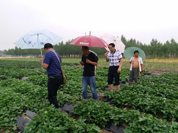 2017年6月22日,河北省農(nóng)科院糧油作物研究所甘薯室主任、京津冀甘薯聯(lián)合鑒定試驗負(fù)責(zé)人馬志民冒雨到禾下土甘薯新品種試驗基地調(diào)研,邯鄲市禾下土種業(yè)有限公司總經(jīng)理崔伏喜陪同參觀。