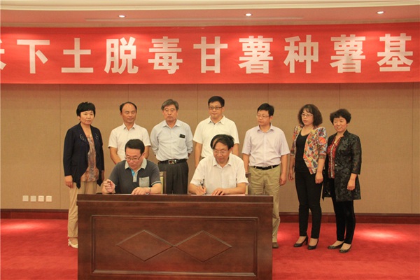 2015年9月24日在"2015年禾下土脫毒甘薯種薯基地觀摩會"召開期間,《邯鄲市禾下土種業(yè)有限公司與中國農(nóng)科院甘薯研究所所企合作框架協(xié)議》簽約儀式在磁縣溢泉湖嵩景樓國際會議中心隆重舉行。邯鄲市禾下土種業(yè)有限公司總經(jīng)理崔伏喜與徐州市農(nóng)科院副院長李強分別代表雙方簽署《所企合作框架協(xié)議》。國家甘薯產(chǎn)業(yè)技術(shù)研發(fā)中心綜合實驗室主任、崗位科學(xué)家李洪民研究員、國家甘薯產(chǎn)業(yè)技術(shù)體系崗位科學(xué)家、河南省農(nóng)科院植保所所長張振臣、國家甘薯產(chǎn)業(yè)技術(shù)體系石家莊綜合試驗站站長、崗位科學(xué)家張松樹研究員、河南省商丘市農(nóng)科院副院長楊愛梅研究員出席簽字儀式。《所企合作框架協(xié)議》是中國農(nóng)科院甘薯研究所與邯鄲市禾下土種業(yè)有限公司為促進脫毒甘薯產(chǎn)學(xué)研合作,共同推動脫毒甘薯產(chǎn)業(yè)的健康發(fā)展而簽訂的戰(zhàn)略合作協(xié)議。該協(xié)議將充...