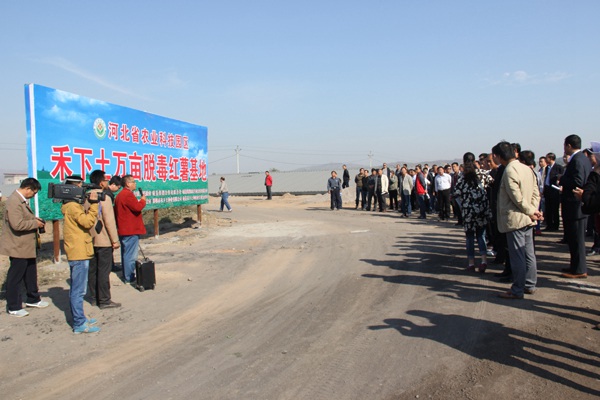 2015年9月24日"2015年禾下土脫毒甘薯種薯基地觀摩會"在磁縣溢泉湖度假村隆重舉行。會議特別邀請徐州市農(nóng)科院副院長、育種專家李強研究員、國家甘薯產(chǎn)業(yè)技術(shù)研發(fā)中心綜合實驗室主任、崗位科學(xué)家李洪民研究員、國家甘薯產(chǎn)業(yè)技術(shù)體系崗位科學(xué)家、河南省農(nóng)科院植保所所長張振臣、國家甘薯產(chǎn)業(yè)技術(shù)體系石家莊綜合試驗站站長、崗位科學(xué)家張松樹研究員、河南省商丘市農(nóng)科院副院長楊愛梅研究員、河北省農(nóng)業(yè)產(chǎn)業(yè)協(xié)會、邯鄲市農(nóng)業(yè)局、磁縣農(nóng)牧局、磁縣工商聯(lián)、磁縣供銷聯(lián)社主管領(lǐng)導(dǎo),以及來自全國各地甘薯育苗企業(yè)、種植大戶等80余人出席觀摩。邯鄲市禾下土種業(yè)有限公司總經(jīng)理陪同參加。按照會議日程安排,首先邀請與會專家、主管領(lǐng)導(dǎo)、業(yè)界同仁共同來到邯鄲市漳河生態(tài)科技園區(qū)禾下土脫毒甘薯產(chǎn)業(yè)基地,先后對禾下土脫毒原種薯基地、...