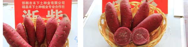 該品種萌芽性好,苗期長(zhǎng)勢(shì)旺,莖蔓長(zhǎng),葉片心型帶齒,葉色綠;結(jié)薯集中,個(gè)數(shù)較多,平均單株結(jié)薯數(shù)5.1個(gè),平均單薯重106.1克,50~250克中薯比例58.7%;薯塊紡錘或長(zhǎng)紡錘型,薯皮紫色,薯肉紫色,表皮光滑;薯塊干物率35.3%,鮮薯蒸煮食味較甜、粉;抗性經(jīng)徐州國(guó)家甘薯研究中心鑒定高抗莖線蟲病、抗根腐病和蔓割病,中抗黑斑病,耐儲(chǔ)性好。