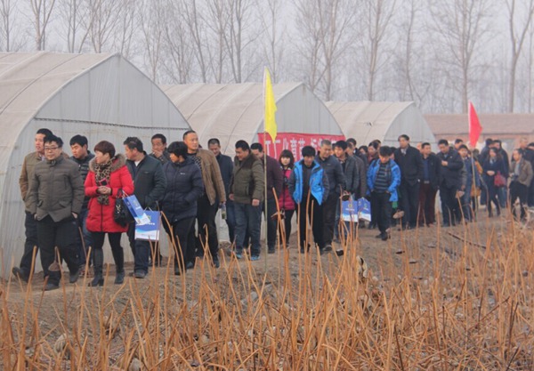 2015年1月8日上午,出席第二屆中原脫毒甘薯產(chǎn)業(yè)發(fā)展研討會(huì)的專家、教授及育種育苗、機(jī)械、加工、銷售、肥料、化控、種植等企業(yè)代表共130余人一起來到邯鄲市漳河生態(tài)科技園區(qū),參觀了禾下土脫毒甘薯組培中心、種苗基地、種薯基地和種薯窖藏設(shè)施,深入了解禾下土脫毒甘薯產(chǎn)業(yè)建設(shè)與發(fā)展情況。