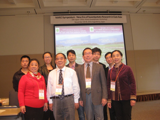 2014年11月27—30日,第六屆中日韓甘薯研討會在日本鹿兒島召開,本次會議由三國甘薯研究協(xié)會主辦,由九州沖繩農(nóng)業(yè)研究中心和作物科學研究所承辦,并得到了鹿兒島大學農(nóng)學院和日本根莖類作物發(fā)展協(xié)會的支持。國家甘薯產(chǎn)業(yè)技術體系首席科學家馬代夫研究員牽頭中國51位專家與會。