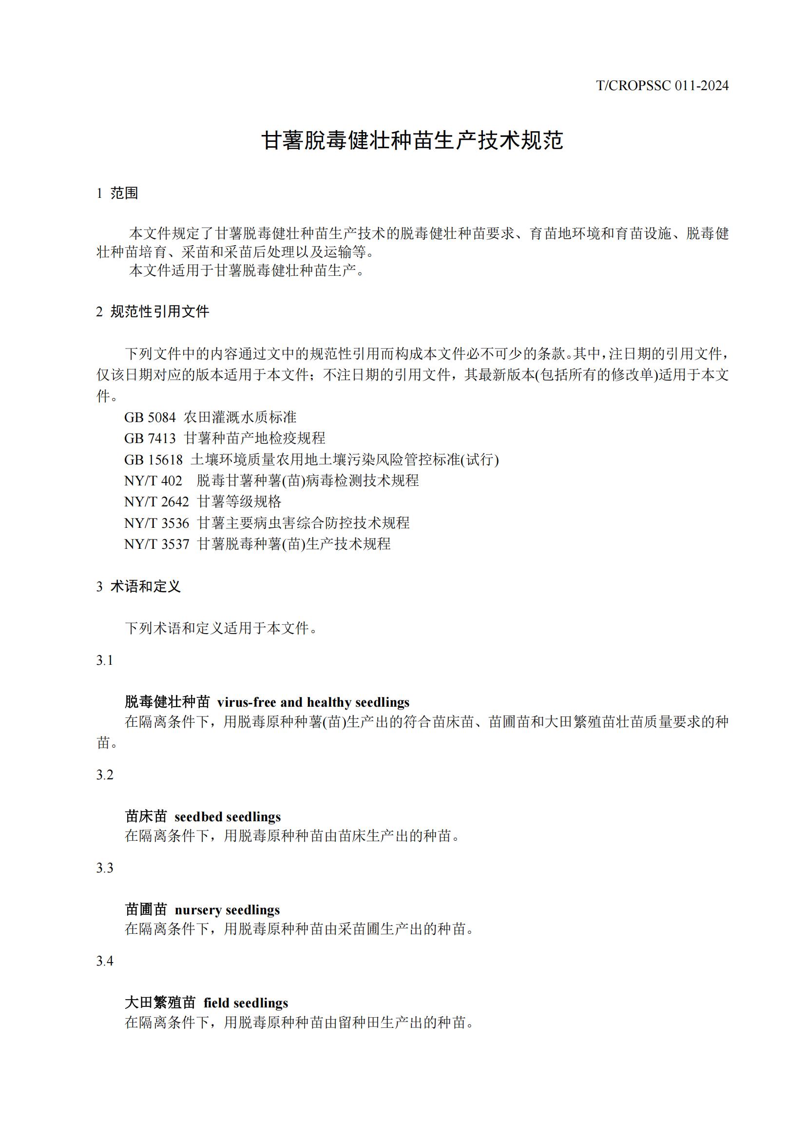 為加快推動甘薯脫毒健壯種苗生產(chǎn)技術(shù)規(guī)范化,促進我國甘薯產(chǎn)業(yè)的高質(zhì)量發(fā)展,中國作物學會甘薯專業(yè)委員會、江蘇徐淮地區(qū)徐州農(nóng)業(yè)科學研究所、邯鄲市禾下土種業(yè)有限公司共同起草的《甘薯脫毒健壯種苗生產(chǎn)技術(shù)規(guī)范》團體標準正式對外公布。