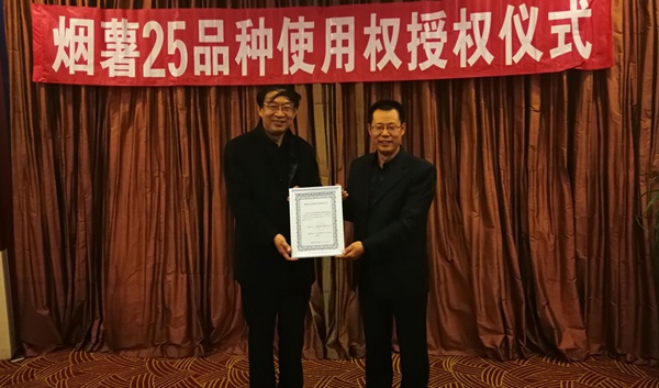 在會上,邯鄲市禾下土種業(yè)有限公司與授權單位山東省煙臺市農科院簽署了煙薯25品種使用權授權合同。