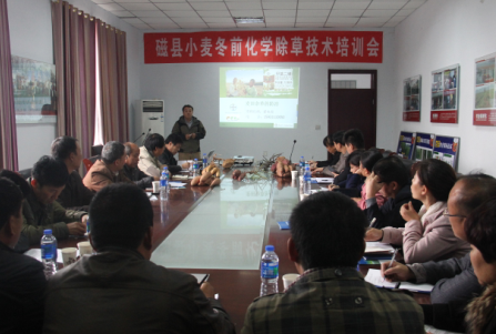 2014年10月31日上午,由磁縣農(nóng)牧局和邯鄲市禾下土種業(yè)有限公司聯(lián)合舉辦的磁縣小麥冬前化學(xué)除草培訓(xùn)會(huì)及禾下土脫毒紅薯種苗技術(shù)推介會(huì)在禾下土公司會(huì)議室召開,參會(huì)人員包括磁縣農(nóng)牧局包鄉(xiāng)干部、各鄉(xiāng)鎮(zhèn)技術(shù)員和禾下土公司業(yè)務(wù)人員32人,會(huì)議由劉聚江副局長(zhǎng)主持,德國(guó)拜耳公司河北總代理河北家園翟電虎經(jīng)理講解世瑪使用技術(shù),禾下土公司王玉文推介脫毒紅薯(甘薯)種苗及種植技術(shù)。
