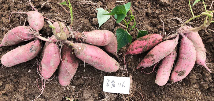 龍薯116龍薯116(原系號11-6)是福建省龍巖市農(nóng)業(yè)科學(xué)研究所于2012年以龍薯9號放任授粉的后代中育成。該品種具有綜合性狀好,薯干與淀粉產(chǎn)量高,食味品質(zhì)粉、香、甜,中抗甘薯蔓割病,是一個理想的食飼兼用型品種。特征特性:短蔓株型半直立,單株分枝數(shù)較多,成葉心形帶齒,葉片大小中等,頂葉、成葉、莖、葉柄、柄基、葉主脈、葉側(cè)脈、脈基色均為綠色;蔓粗中等;單株結(jié)薯5-8條,薯形長紡,結(jié)薯集中,薯塊大小較均勻,且光滑美觀。薯皮紅色,薯肉淡黃色。干物率33.66%,比對照"金山57"(下同)高7.65個百分點;淀粉率22.92%,比對照高6.65個百分點;食味評分83.75 ,比對照高3.5個百分點;外觀(薯形)評分83.02 ,比對照高3.02個百分點。中抗甘薯蔓割病,耐肥,較耐干旱。發(fā)芽早,長苗較快。產(chǎn)量表現(xiàn):2017年與2018年...