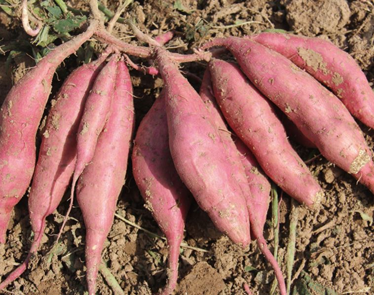 徐薯32① 特征特性:該品種秧蔓短。一般蔓長60~80厘米,澇天不超過110厘米。二產(chǎn)量高而穩(wěn)產(chǎn)。一般春薯畝產(chǎn)約為3500~4500公斤,夏薯畝產(chǎn)約為2500~3500公斤。三抗病性強(qiáng)。四口味好,薯形美觀。其薯口感香甜,軟糯。薯皮紅嫩,肉色金黃美觀。五淀粉含量高,干粉率約為23%~25%,制成粉條的粘度為900~1200,曬干率36%~38%左右。② 品種來源:該品種是國家甘薯中心以"徐薯55-2"為父本、"紅東"為母本育成的超短蔓優(yōu)質(zhì)高產(chǎn)食用及淀粉加工兼用型紅薯新品種,是經(jīng)國家種植試驗(yàn)綜合表現(xiàn)較突出的紅薯新品種。③ 產(chǎn)量表現(xiàn):產(chǎn)量較高,春薯高產(chǎn)田畝產(chǎn)4000公斤左右,夏薯3000公斤以上。④ 栽培要點(diǎn):栽前浸苗,適宜密度每畝3600-4000株。適當(dāng)早栽,結(jié)合覆膜可提前上市。其它管理措施同一般大田。⑤ 市場前景:該品種作為...